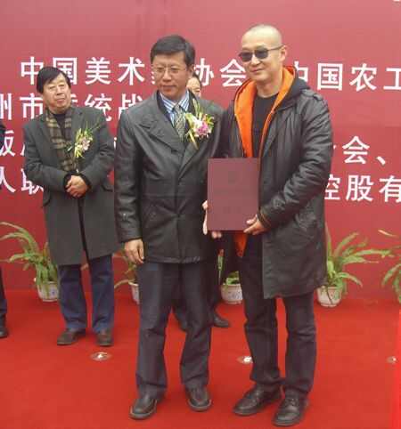 中国农工民主党中央秘书长陈建国为著名理论家唐尧颁发中国雕塑史论研究奖